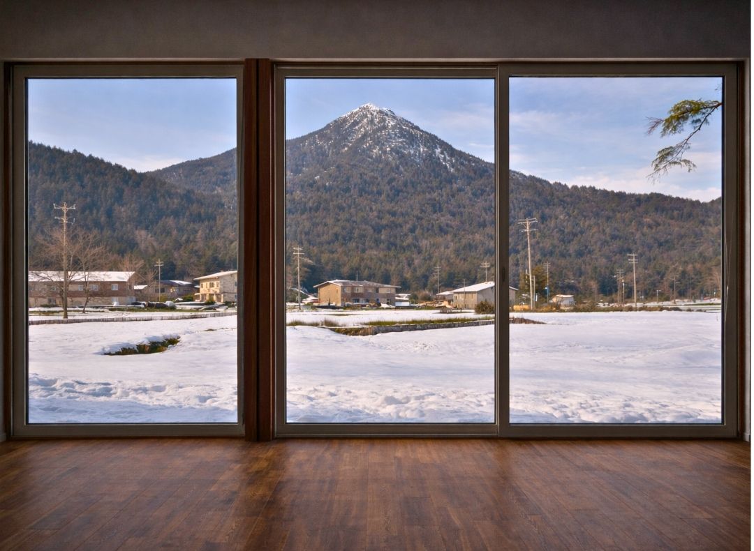「ただいま」とリビングの扉を開けた瞬間、目の前に広がるのは四季折々の山の表情を堪能できる。